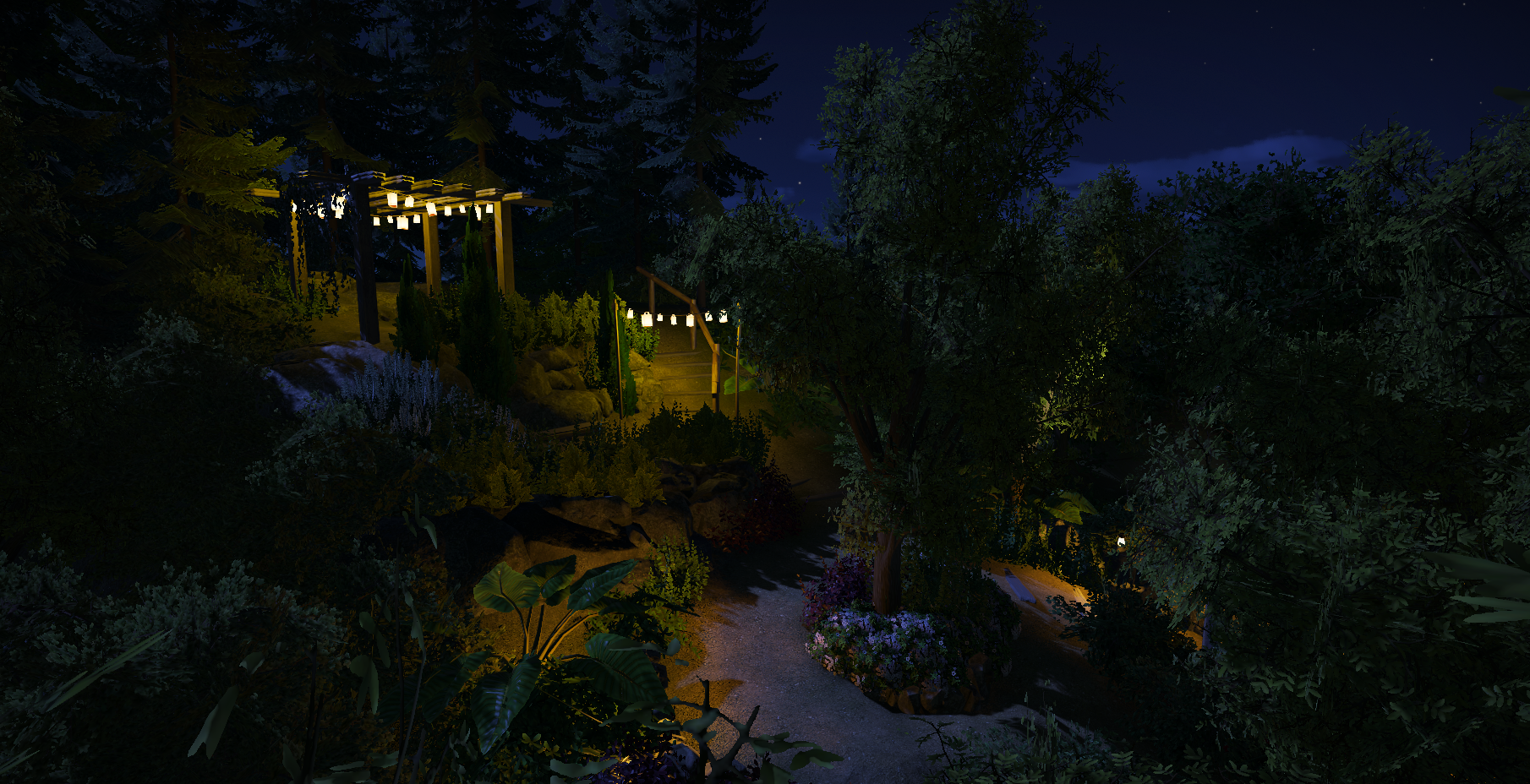 Halusin myös kiinnittää huomiota puutarhan valaistukseen ja siihen, miten se toimii öisin. Puutarha on kauttaaltaan valaistu lämpimillä sävyillä, mikä luo alueelle lähestyttävän ja rauhallisen tunnelman.